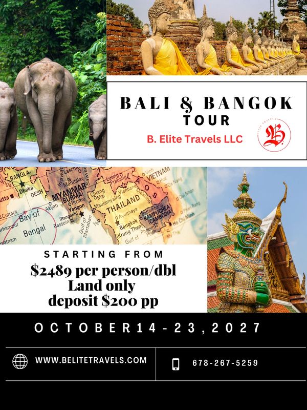We are falling for Bali and Bangkok October 2027. Enjoy 10 days and 5 nights with 4-5 star accommodations, scheduled excursions, some meals and transportation is included. Price is per person based on double occupancy. Trip is land only package.
