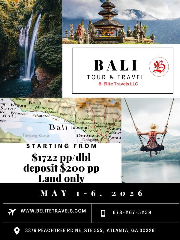 Bask in all of the beautiful culture Bali . Enjoy 6 days and 5 nights with 4-5 star accommodations, scheduled excursions, some meals and transportation is included. Price is per person based on double occupancy. Trip is land only package.